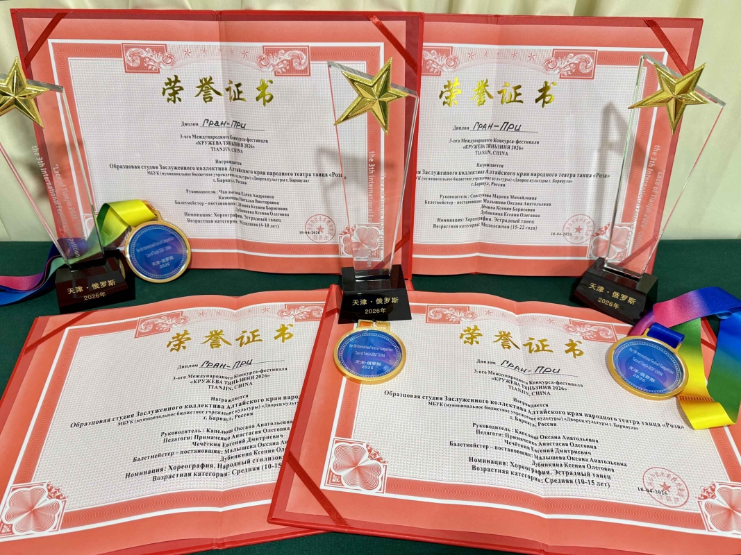 Образцовая студия Заслуженного коллектива Алтайского края театра танца «Роза» приняла участие в III международном конкурсе «Кружева Тяньцзиня», Китайская Народная Республика. Эта поездка — исполнение давней мечты и ярчайшая глава в истории коллектива!
