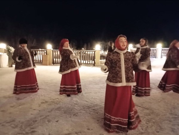 В новогоднюю ночь солисты хора Сибиряночка и студии Отрада поздравили с праздником отдыхающих парка-отеля «Алтай-резорт»!