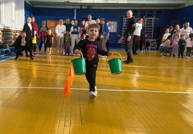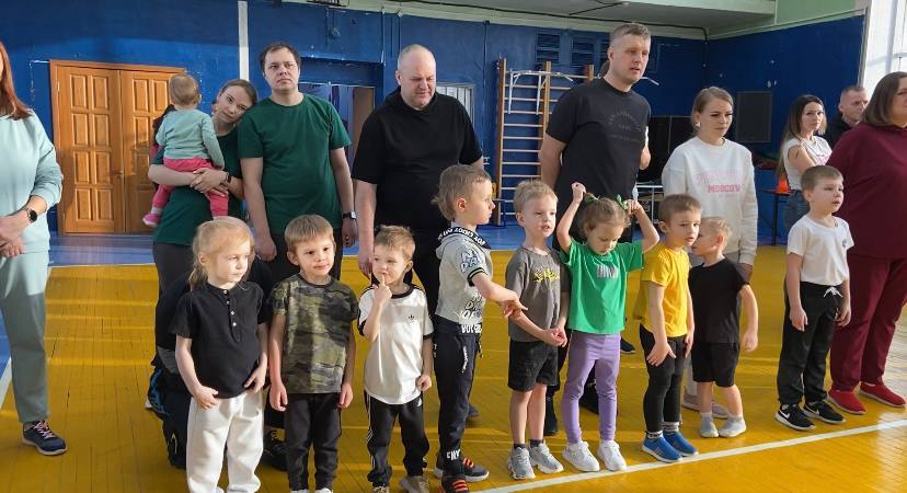 15 февраля в спортивном зале Дворца культуры дети и родители состязались в силе, ловкости, и смелости. Дети ловко справлялись с боевыми конями, острыми мечами, непроходимой чащей, водной переправой и высокими стенами замка, где томились прекрасные царевны-мамы.